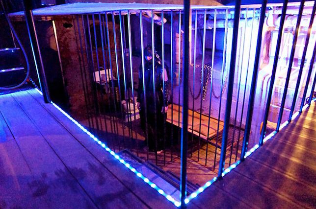 Die erste Ebene ist der Gefängnistrakt mit Isolations- und offenen Zellen, schweren Eisengittern, Ketten und Aufhängungen – perfekt für intensive Haft, Übernachtungen- und Foltererfahrungen.