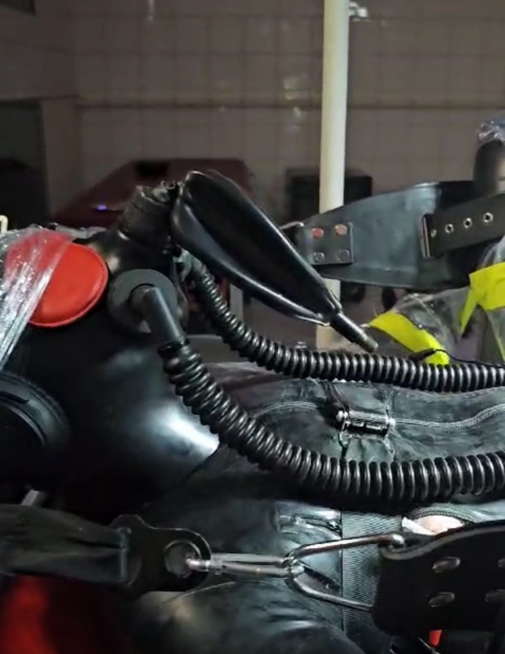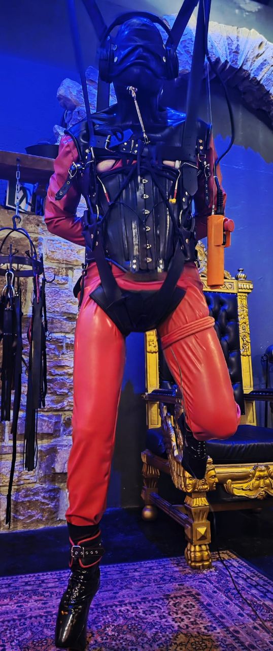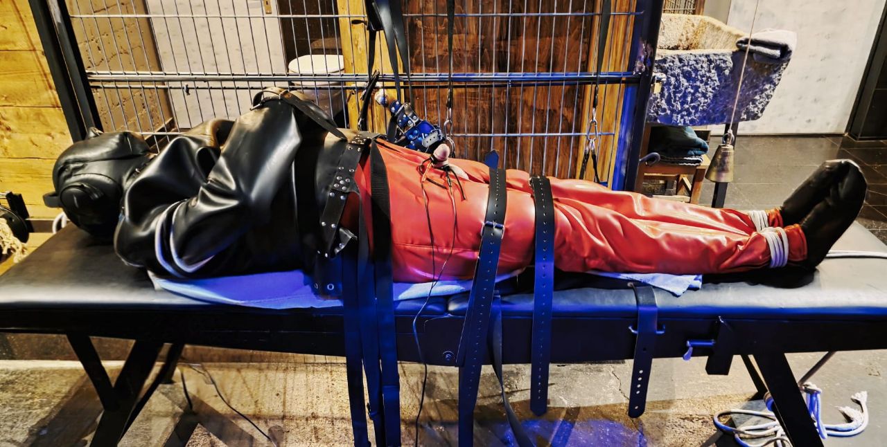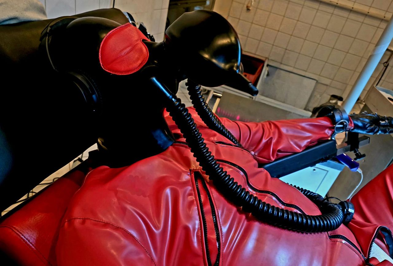 - Weiche Gefängnisanzüge aus Latex mit fester Maske