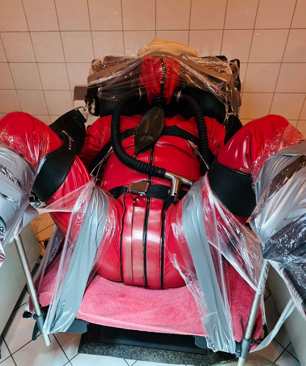- Latex-Bondagesäcke mit integrierten Armführungen