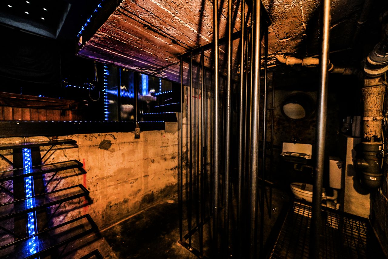 Geschlossene Arrestzelle mit viel Ketten, harter Stahlliege mit Fesselmöglichkeit, Aufhängungen, Standfixierungen, ausgesuchte Hand- und Fußschellen, Eisenhalsband, schwere Stahlmaske, Beinpranger. Offene Zelle mit schweren Eisenstäben zum fixieren, harte Fixierungsliege, diverses Folterspielzeug.